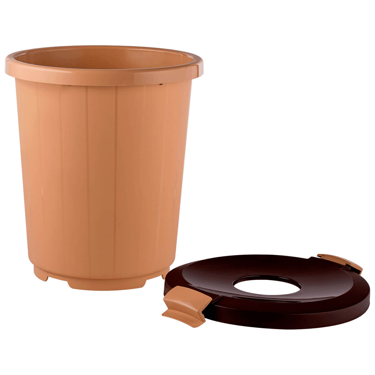 Выберите бежевый мусорный бак с крышкой-воронкой для эффективного и инновационного подхода к управлению отходами в вашем доме, офисе или любом другом пространстве.